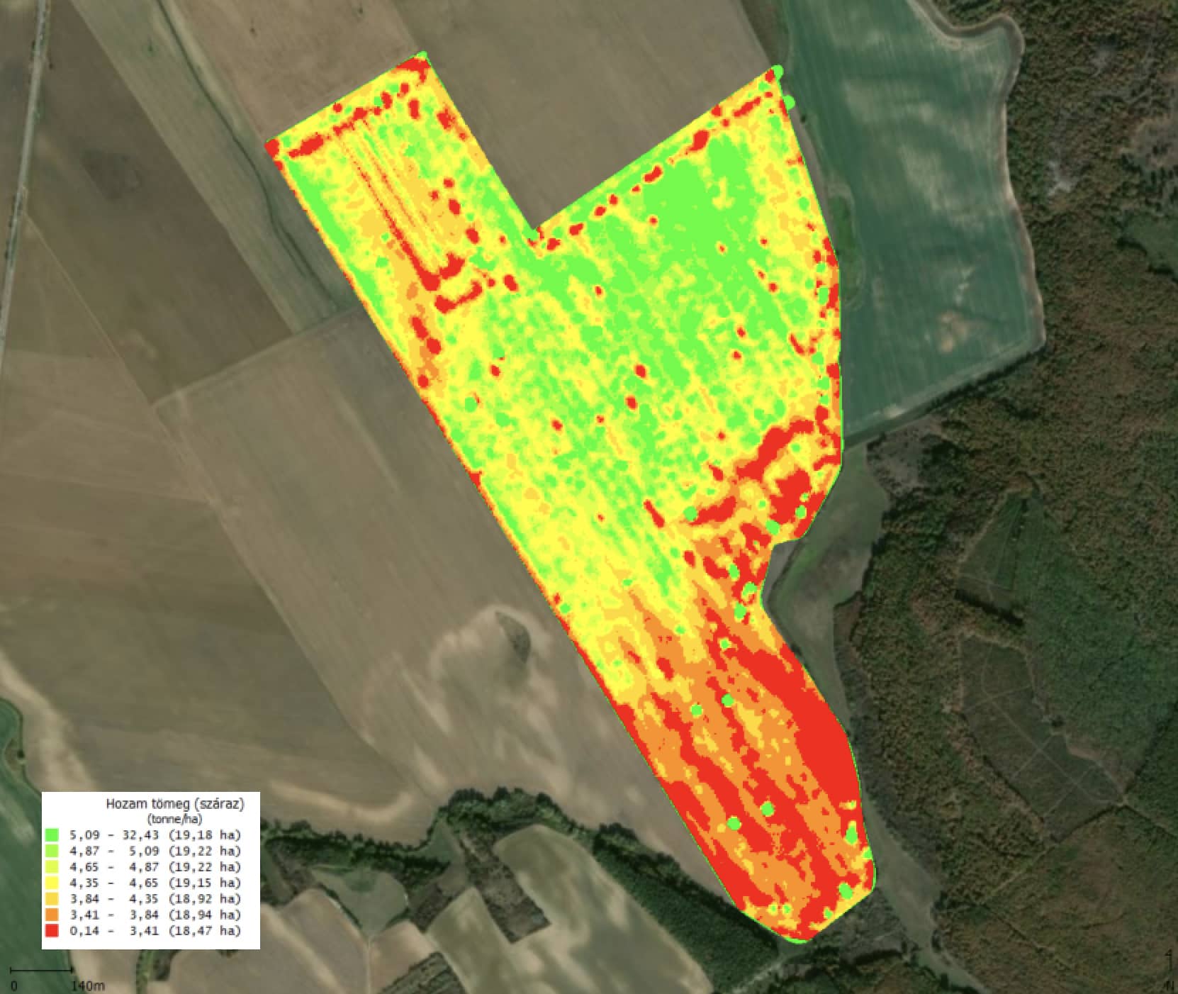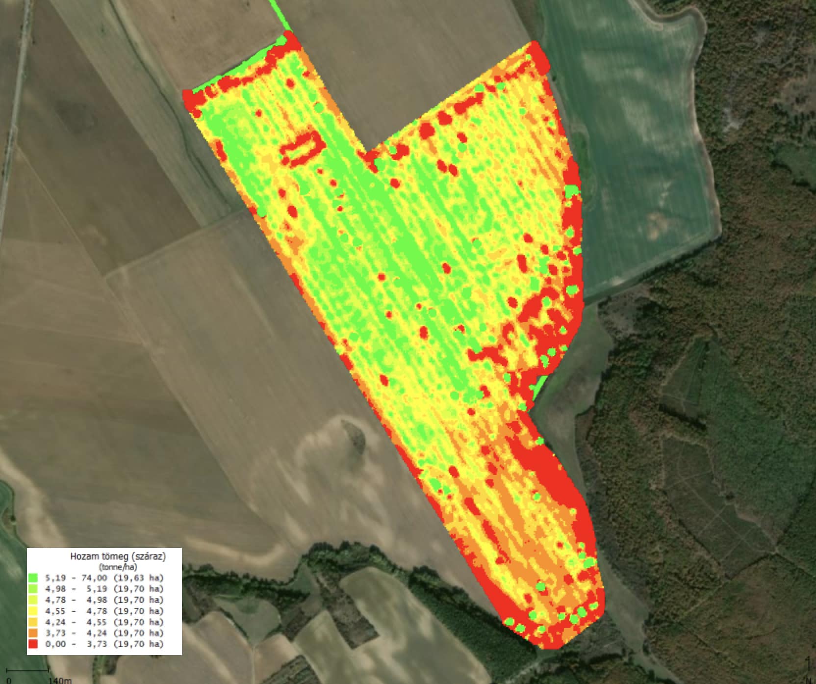A 2023. évi repce tábla esetén látható, hogy a tengerszint feletti magassági értékek (232-270m) jól korrelálnak a hozamokkal.