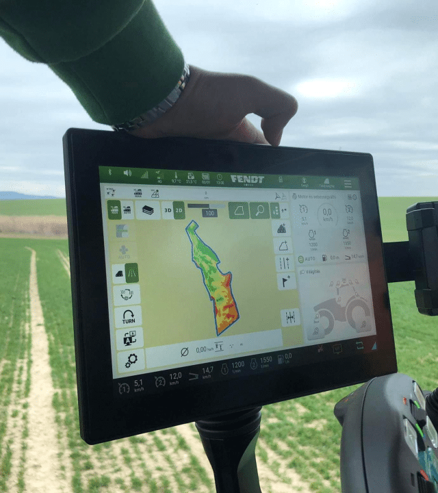 - A zónákat a Gazdálkodóval történt egyeztetést követően a kezeléseknek megfelelően dózisoljuk és kiírjuk a kész térképet munkagép monitorára.