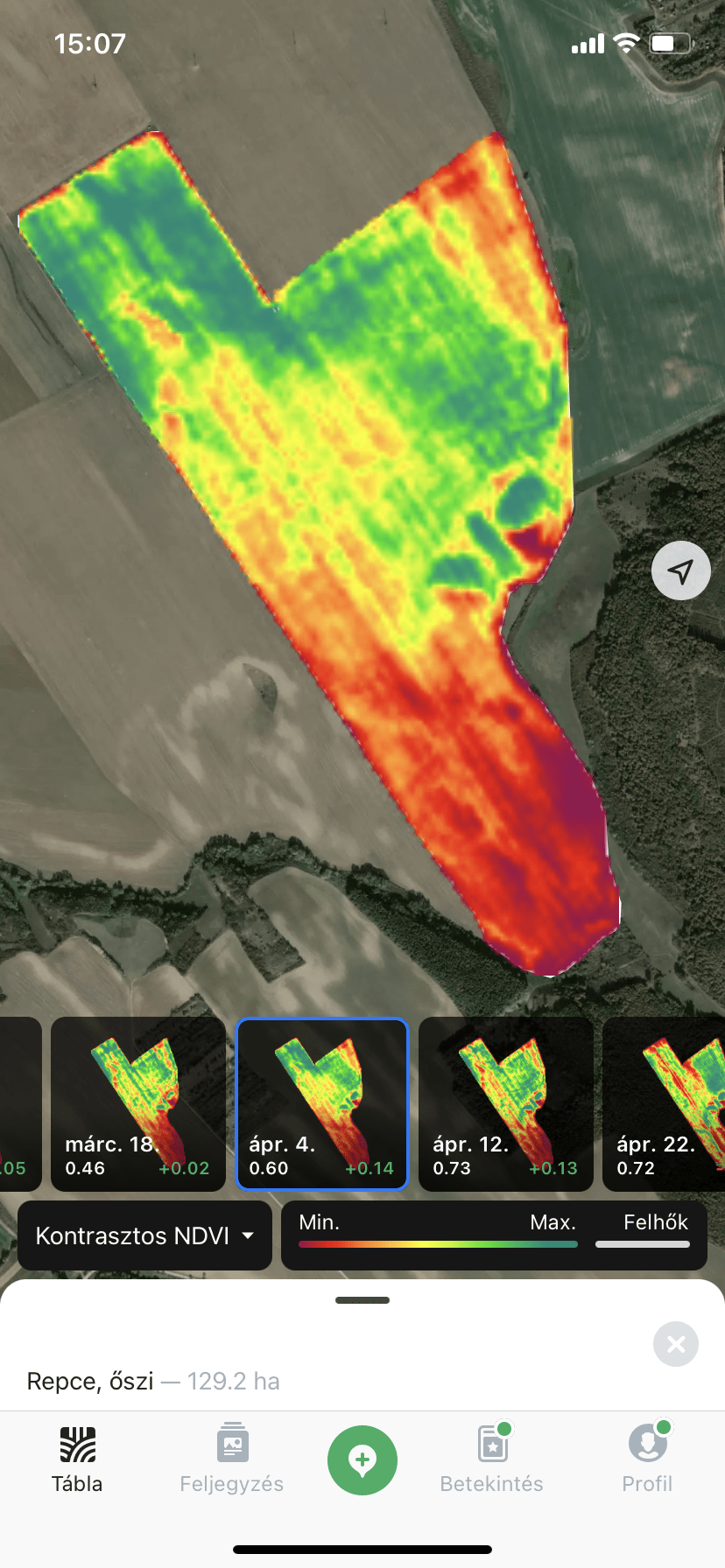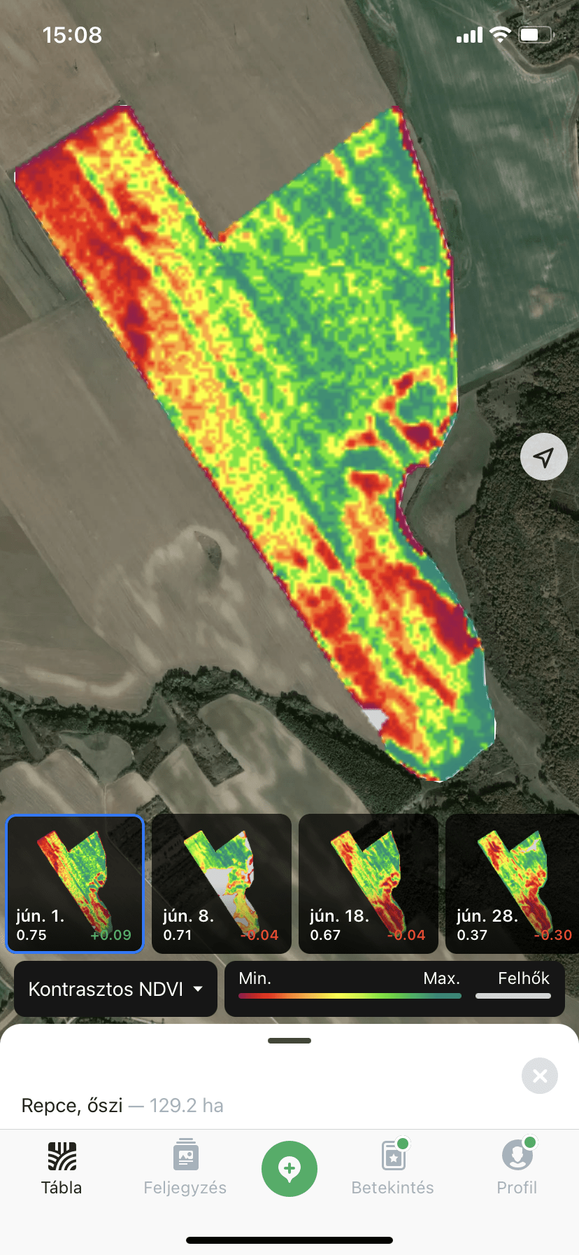 Ha nincs megfelelő mennyiségű hozamadat, akkor NDVI képeket is felhasználunk a zónák kialakításához. Azonban nagyon fontos, hogy megfelelő fenofázisban készült képekkel dolgozunk.